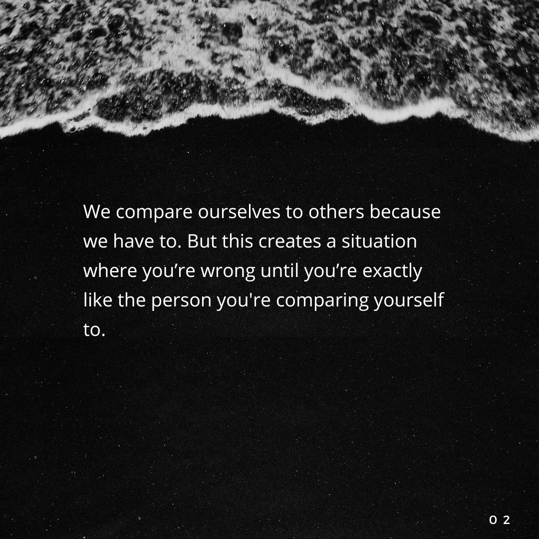 But this creates a situation where you’re wrong until you’re exactly like the person you’re comparing yourself to. And then you’re right. But this destroys your identity and sense of self.