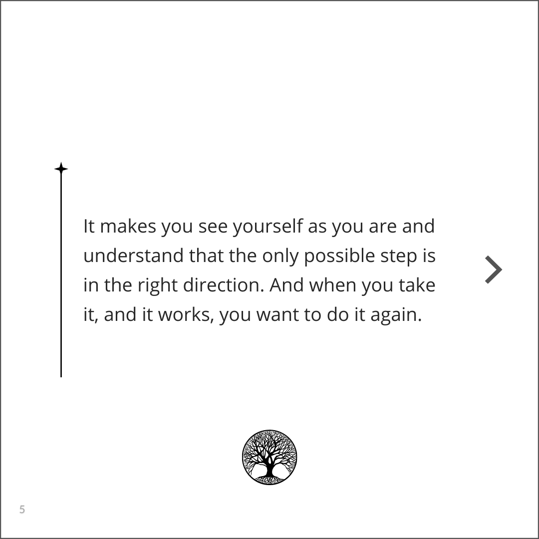 It makes you see yourself as you are and understand that the only possible step is in the right direction.