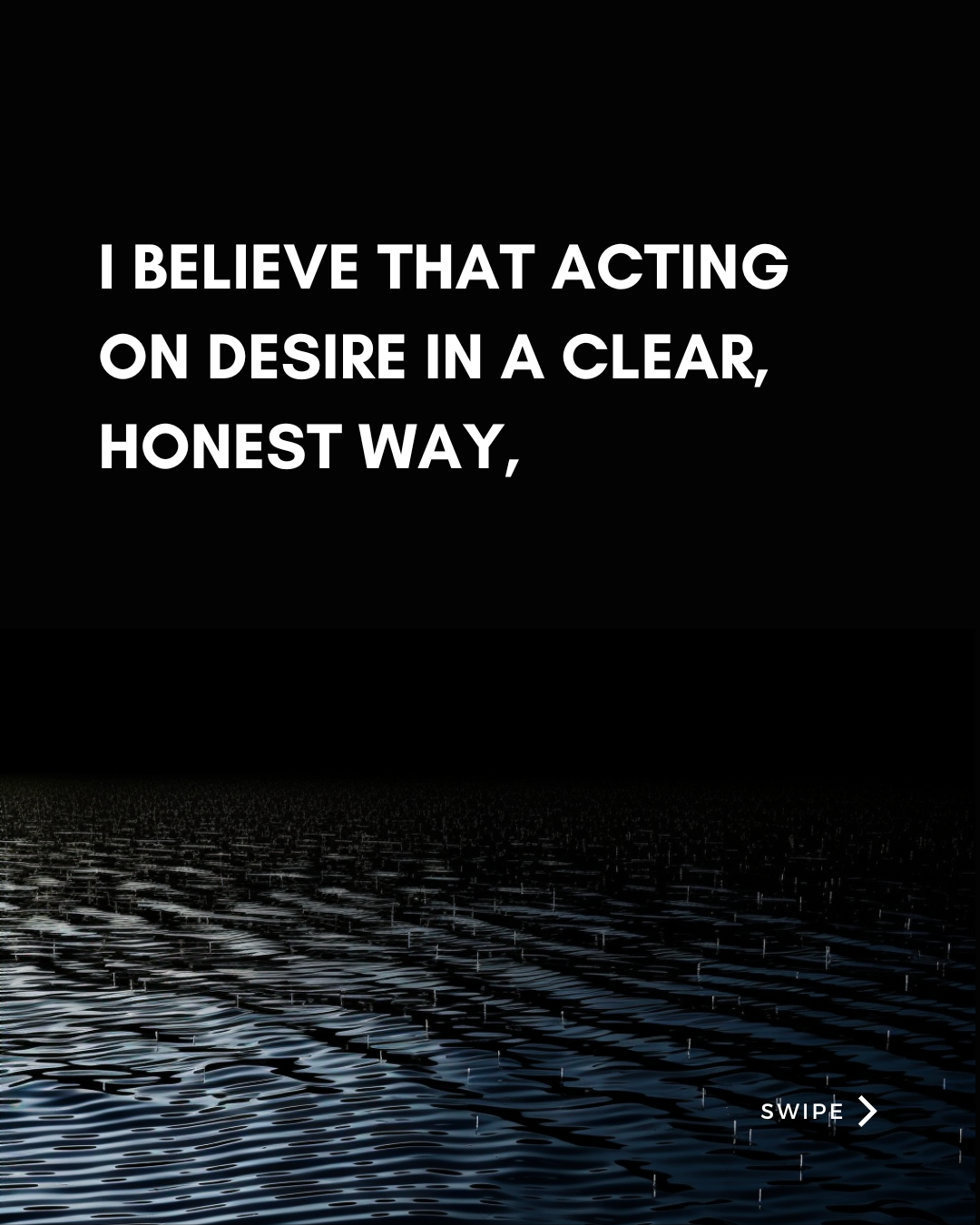 I believe that acting on desire in a clear, honest way, teaches us through the feedback of experience what is true and what is good.